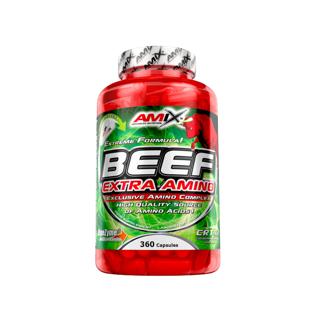 Amix™ Beef Extra Amino es un complemento alimenticio en comprimidos que contiene aminoácidos derivados de proteína hidrolizada de origen bovino. Este producto está diseñado para proporcionar una fuente concentrada de aminoácidos esenciales y no esenciales.