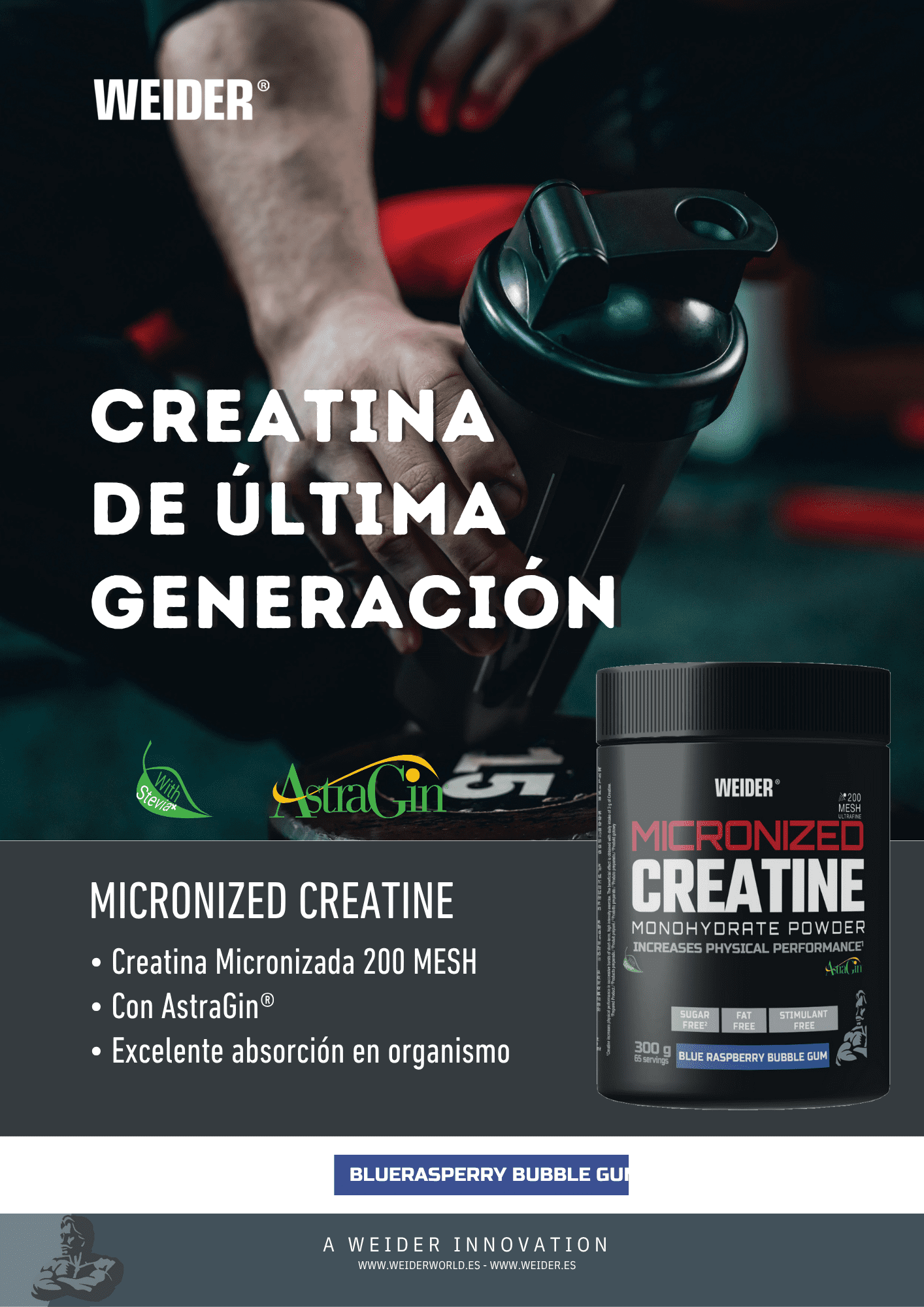 Además, incluye AstraGin®, un compuesto vegetal que, según Weider, incrementa la absorción de la creatina en hasta un 33%.