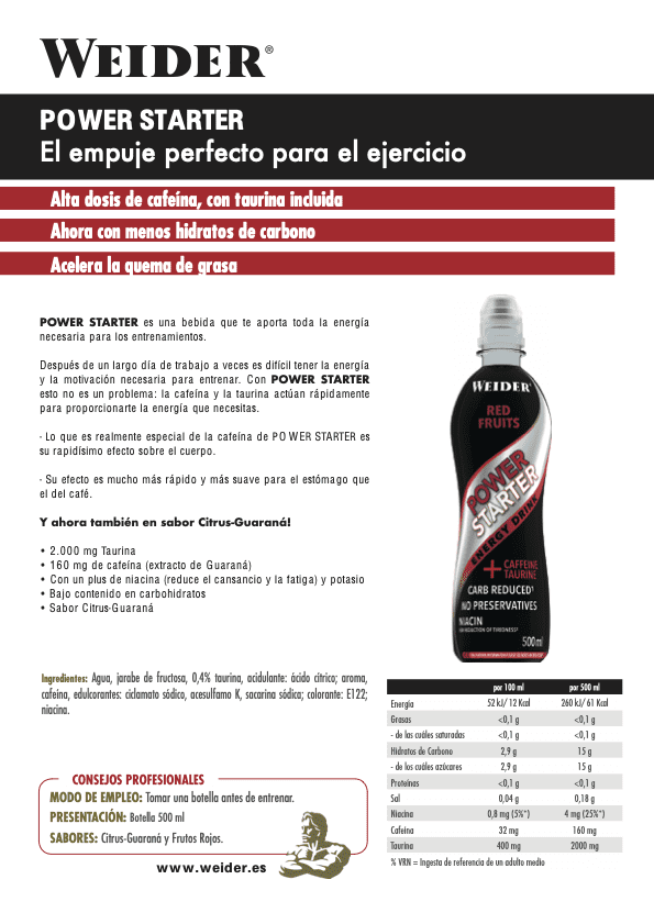 Debido a su elevado contenido en cafeína, se recomienda consumir Power Starter en cantidades limitadas. No lo mezcle con alcohol. No apto para niños, diabéticos ni personas sensibles a la cafeína
