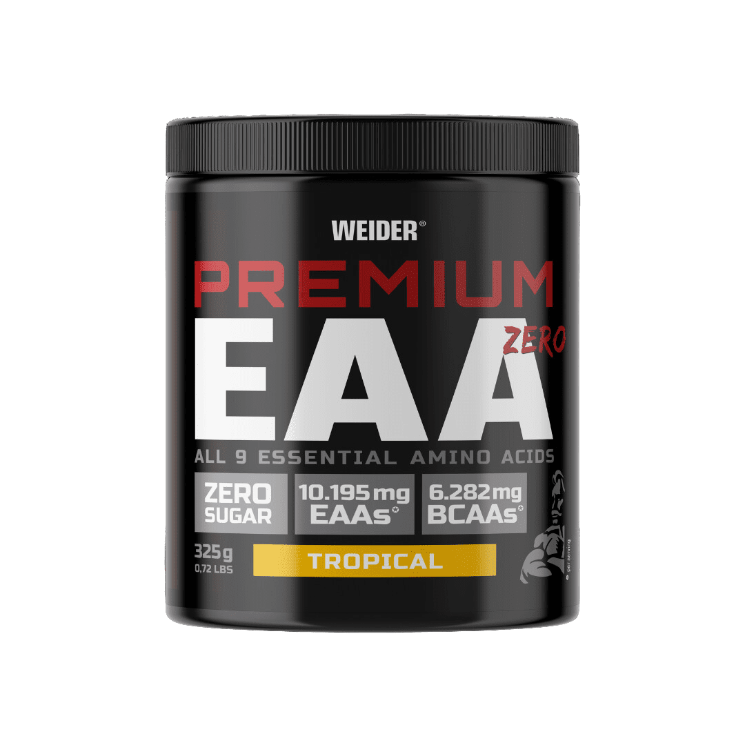 Los EAAs son lo que se conoce en español como aminoácidos esenciales, aquellos que nuestro organismo necesita, pero no puede producirlos por sí mismo, por lo que es importante incorporarlos a través de la dieta. Premium EAA zero aporta los 9 aminoácidos esenciales, además de BCAAs (aminoácidos ramificados) en las cantidades adecuadas que favorecen la síntesis proteica y la recuperación muscular tras los entrenamientos.