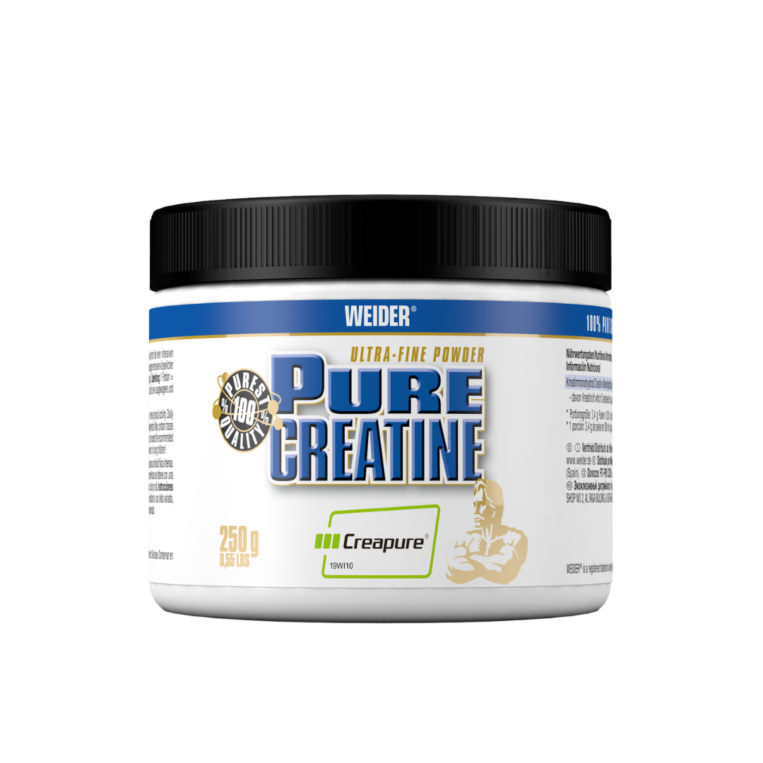 Con la finalidad de ayudarte a alcanzar tus mejores resultados, WEIDER® ha formulado PURE CREATINE con la creatina más pura del mercado (100% Creapure®). Con PURE CREATINE podrás afrontar tus entrenamientos diarios con la máxima fuerza posible.