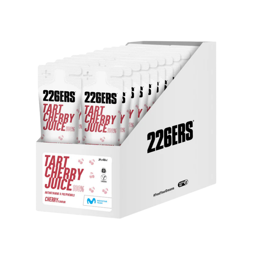 Concentrado de zumo de cereza ácida (Prunus cerasus), con un aporte natural de compuestos fenólicos antioxidantes, entre los que destaca el contenido en polifenoles y antocianinas, con un aporte de 27,5g de hidratos de carbono.