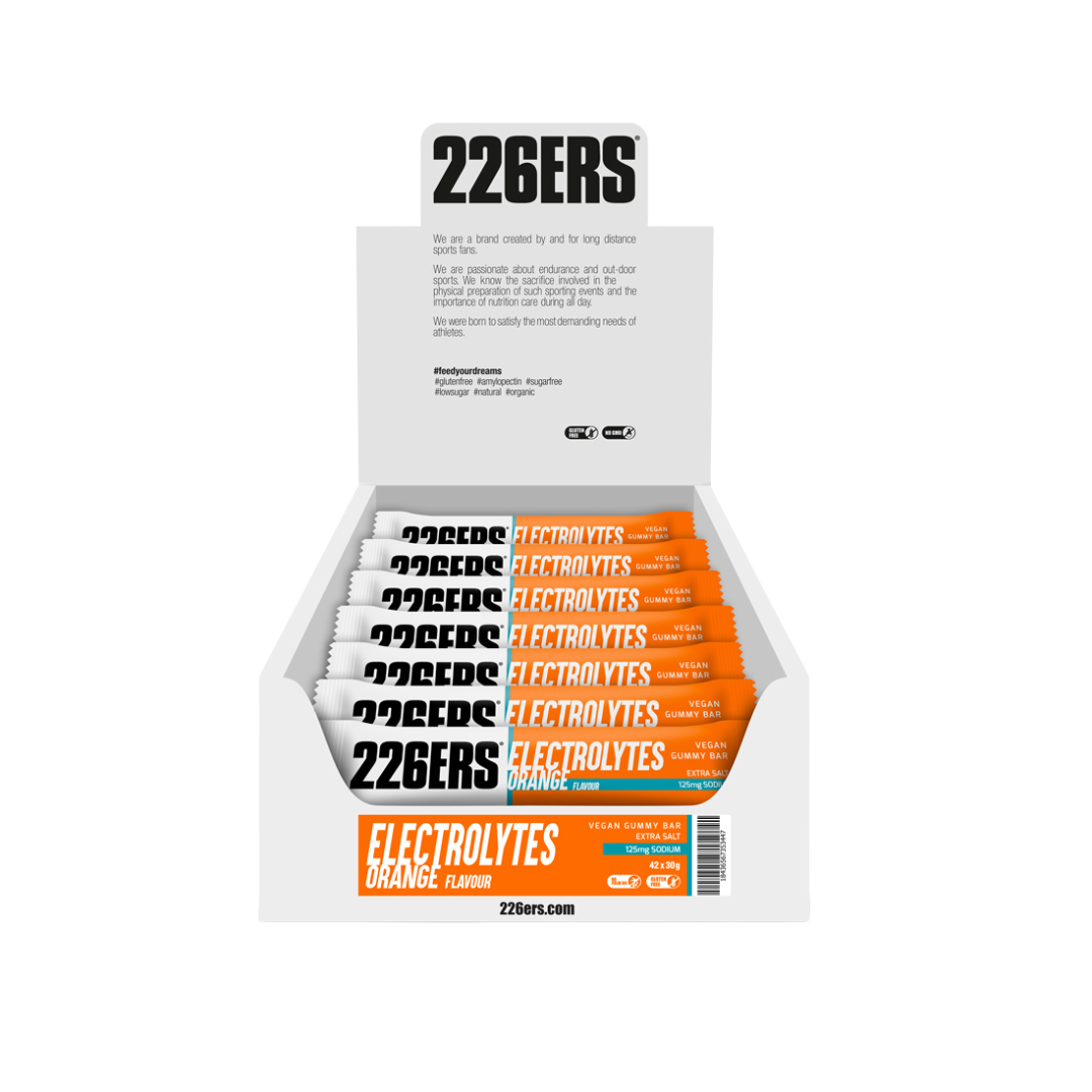 - SODIO: Con 60 mg de sodio por barrita, esencial para la función de las células, fluidos corporales y regulación de la presión arterial, el volumen de sangre y el pH.